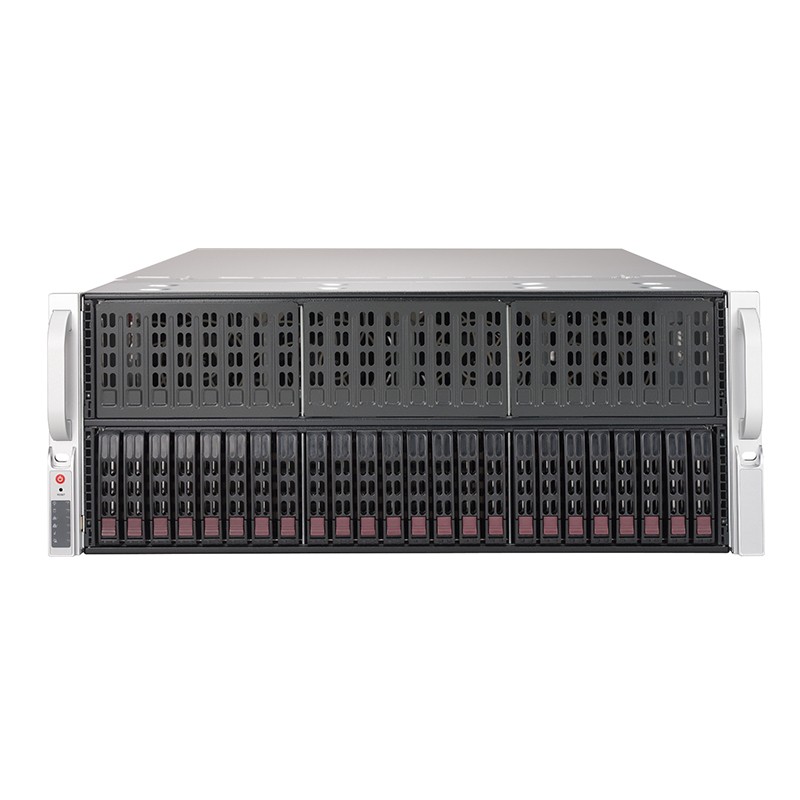 高性能 : 支持两颗英特尔® 至强® 可扩展处理器,单颗处理器最高支持28个计算核心,内存最高 2933 MT/s,提供强大的处理效能和优越的内存带宽,处理器上集成 I/O 控制器,提供高效的 I/O 性能先进技术 : 支持睿频加速技术、超线程技术和虚拟化技术(VT-x),第二代英特尔® 至强® 可扩展处理器更是加入了英特尔® 高级矢量扩展512(AVX-512)指令集,其嵌入的英特尔® 深度学习加速旨在为图像分类、语音识别、语言翻译和物体检测等深度学习应用案例提供更高效的推理加速高扩展 : 支持24个热插拔 2.5英寸 SATA/SAS 硬盘,能灵活扩展存储,为广泛的存储应用提供更强大的容量池;支持 8张双宽/单宽 PCI-E 3.0 X16 全高全长显卡,为3D渲染、科学研究领域、虚拟化、AI人工智能、深度学习和人脸识别等应用提供强劲的计算能力安全保障 : 采用 2000W 80PLUS 钛金级冗余电源,转换效率可达到 96% 以上,2+2 的冗余电源模式设计能给服务器保驾护航,即使其中一个或两个电源模块出现故障,也能保持服务器的业务正常运作;配备远程管理端口,提供远程管理和远程诊断、维护,轻松实现远程开关机、查看多项故障指示和在线更新固件等功能,有效降低宕机风险,保证服务器的正常运作