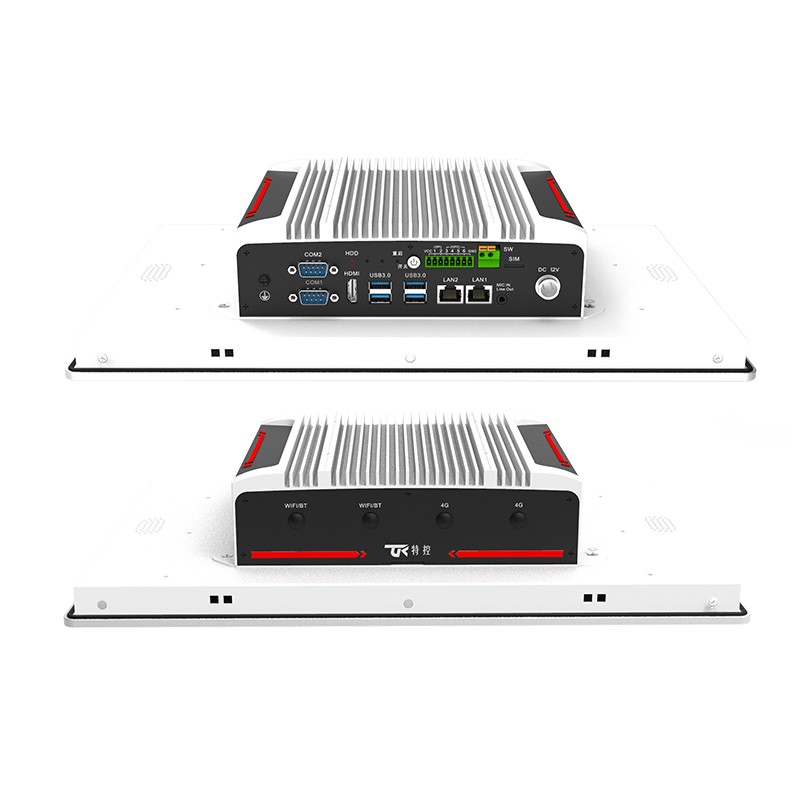 (J6412,4*COM+6*USB)15.6纯屏窄边框电容触摸式紧凑型无风扇工业平板电脑/1920*1080/J6412/8G(板载1槽DDR4笔记本,最大32G)/1*M.2,1*2.5寸硬盘位,标配128G固态硬盘/1*HDMI/4*USB3.0/2*USB2.0/标配4*RS232(COM2可选RS485,COM3可选TTL)/6*GPIO(2*GPI,4*GPO)/2*LAN(Realtek)/1*SIM槽/1*远程开关/1*音频Line-Out+MIC二合一(CTIA国际标准)/1*M.2(Key-B支持4G,默认不配)/1*M.2(Key-E 支持WIFI+蓝牙,默认不配)/内置扬声器/标配DC12V输入,可选DC9V-36V宽压输入/标配DC12V 60W电源适配器/嵌入式、壁挂式、VESA支架式/Windows10/linux/外形尺寸389.9*249.9*85.8(mm)/开孔尺寸377.5*237.5(mm)/重量 5.2(KG)