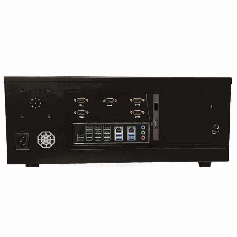 接口丰富:1*HDMI(独显接口),2* LAN(千兆),6*RS232,20*USB(14*USB2.0;6*USB3.0),1*MIC in,1* Line out,1* Line in,1*金属带灯开关,1*PS/2