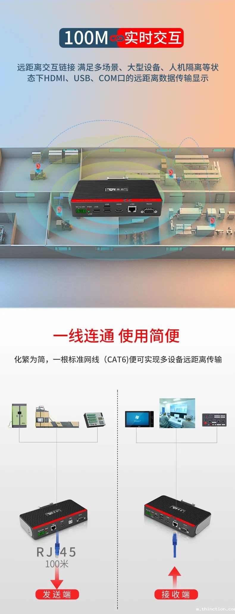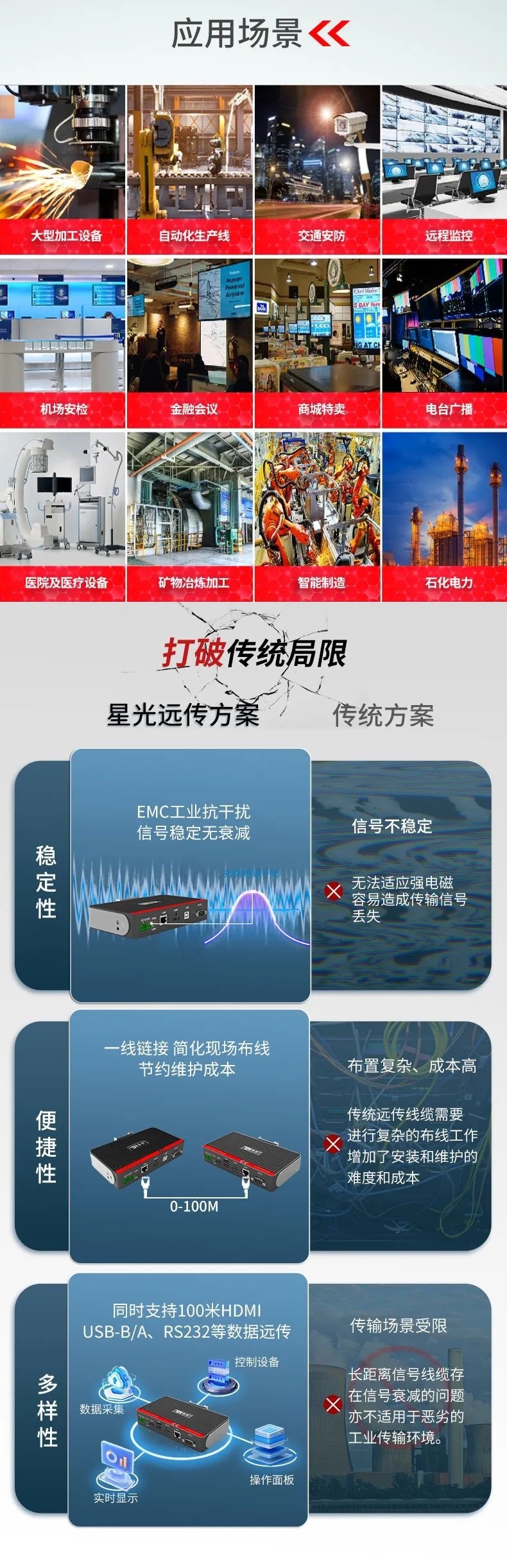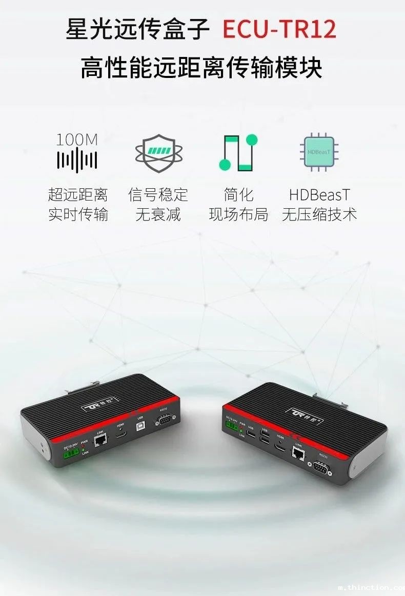 在大型装备、自动化产线、激光及数控行业等需要远距离信号传输场景中,传统HDMI线缆存在信号衰减、传输距离限制、布线不便等问题,这极大地影响显示端的成像质量和双向数据的稳定性和时效性。为此,kaiyun体育官方网站官网研发出抗干扰性强、数据零延时、兼容性强的HDMI星光远传ECU-TR12。