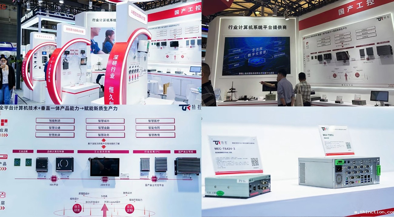 此外,还展示了模块化工业电脑以及基于国产化龙芯、兆芯、飞腾、海光平台的行业计算机,覆盖了智能制造、新能源、智慧高速等多元化应用场景。