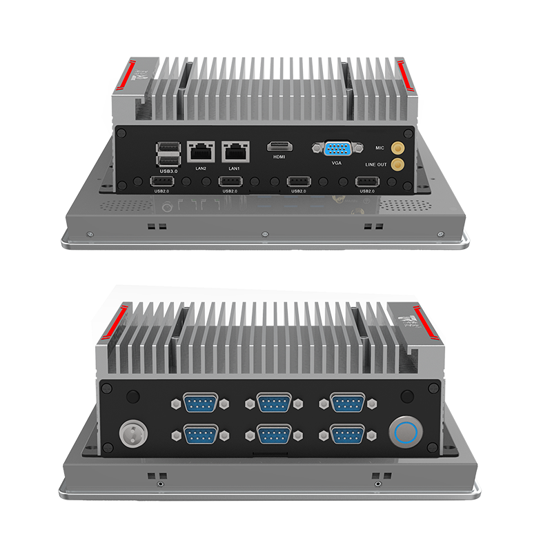 外观设计:铝合金一体成型,工艺精细,科技时尚低功耗:英特尔®赛扬®J1900 板载处理器,TDP 10W稳定可靠:纯工业无风扇设计,大面积铝鳍散热,箱体材质可抗接触式6Kv强电磁干扰;液晶屏接触处加强型密封胶圈设计,面板防水防撞击接口丰富:2*LAN(Intel),6*COM,1*USB3.0,5*USB2.0,1*HDMI,1*VGA,1*MIC In, 1*Line