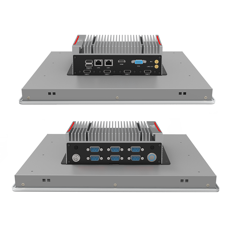 外观设计:铝合金一体成型,工艺精细,科技时尚低功耗:英特尔®赛扬®J1900 板载处理器,TDP 10W稳定可靠:纯工业无风扇设计,大面积铝鳍散热,箱体材质可抗接触式6Kv强电磁干扰;液晶屏接触处加强型密封胶圈设计,面板防水防撞击接口丰富:2*LAN(Intel),6*COM,1*USB3.0,5*USB2.0,1*HDMI,1*VGA,1*MIC In, 1*Line Out,1*mSata(全高,Sata信号,支持 SDD),1*2.5寸硬盘位,1*Mini PCIE(全高,PCIE+USB信号,支持WIFI或者4G)界面友好:纯屏10点工规电容触控,操作更便利