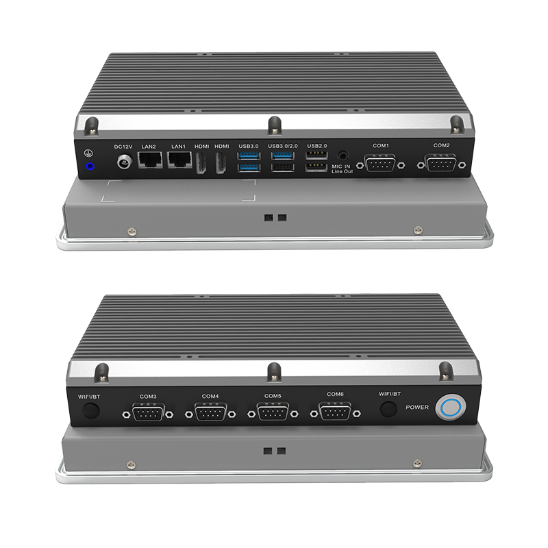 低功耗:英特尔® 赛扬® J6412 板载处理器,TDP 10W外观设计:铝合金一体成型,工艺精细,科技时尚稳定可靠:纯工业无风扇设计,大面积铝鳍散热,箱体材质可抗接触式6Kv强电磁干扰;液晶屏接触处加强型密封胶圈设计,面板防水防撞击人机界面友好:纯屏10点工规电容触控,操作更便利接口丰富:2*LAN(Intel),6*COM,3*USB3.0,3*USB2.0,2*HDMI,1*M.2(KEY-M,2280,支持PCIE x2信号 NVME SDD),1*Mini PCIE(全高,PCIE+USB信号,支持WIFI/BT)