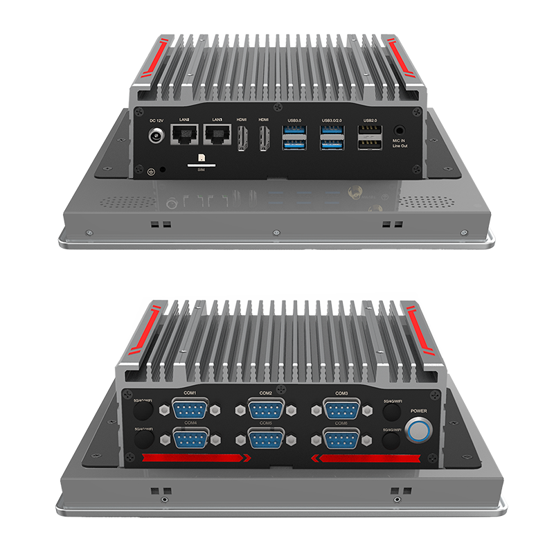 接口丰富: 2*HDMI,2*LAN(Intel I225),6*COM,3*USB3.0,3*USB2.0,1*SIM槽,1*2.5寸硬盘位,1*音频Line-Out+MIC二合一(OMTP国家标准),1*M.2(Key-M,2280,PCIE x2 NVME SDD),1*M.2(Key-B,3052,USB3.0+USB2.0支持4G、5G模块),1*MPCIE(全高,PCIE+USB2.0,支持WIFI+BT/网卡),2*天线孔(WiFi与4G二选一)