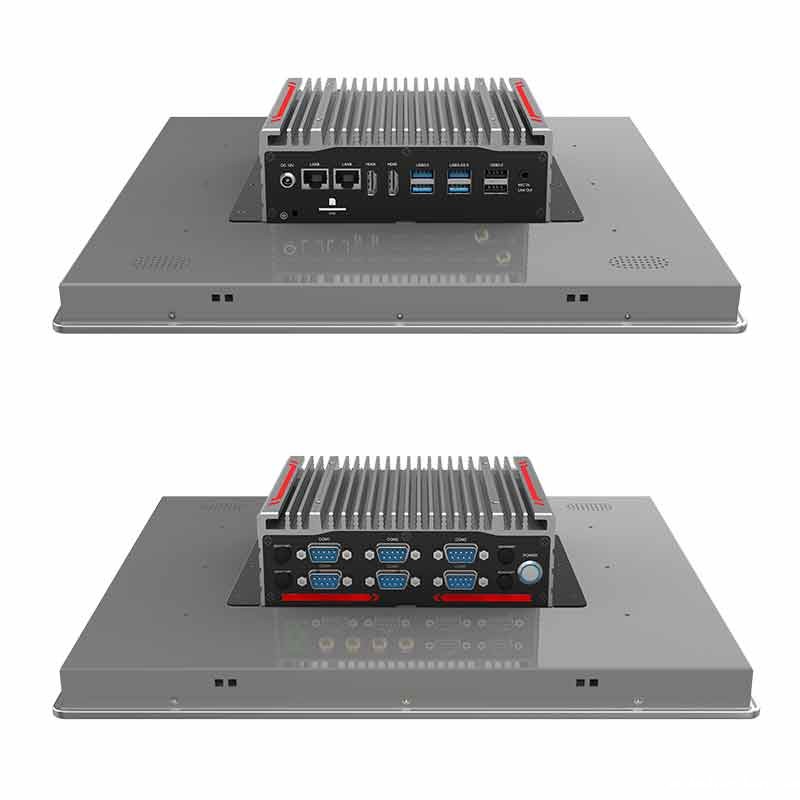 接口丰富: 2*HDMI,2*LAN(Intel I225),6*COM,3*USB3.0,3*USB2.0,1*SIM槽,1*2.5寸硬盘位,1*音频Line-Out+MIC二合一(OMTP国家标准),1*M.2(Key-M,2280,PCIE x2 NVME SDD),1*M.2(Key-B,3052,USB3.0+USB2.0支持4G、5G模块),1*MPCIE(全高,PCIE+USB2.0,支持WIFI+BT/网卡),2*天线孔(WiFi与4G二选一)